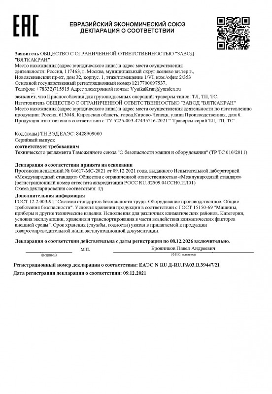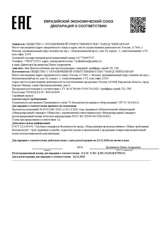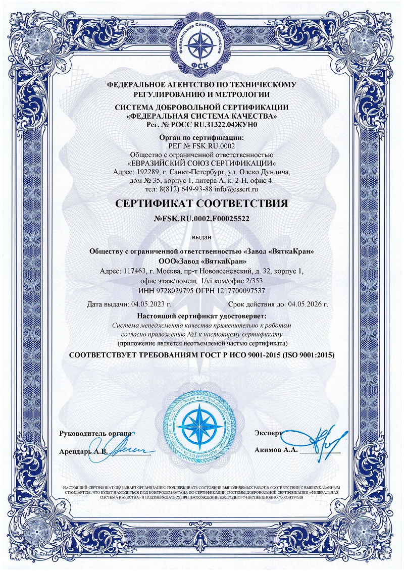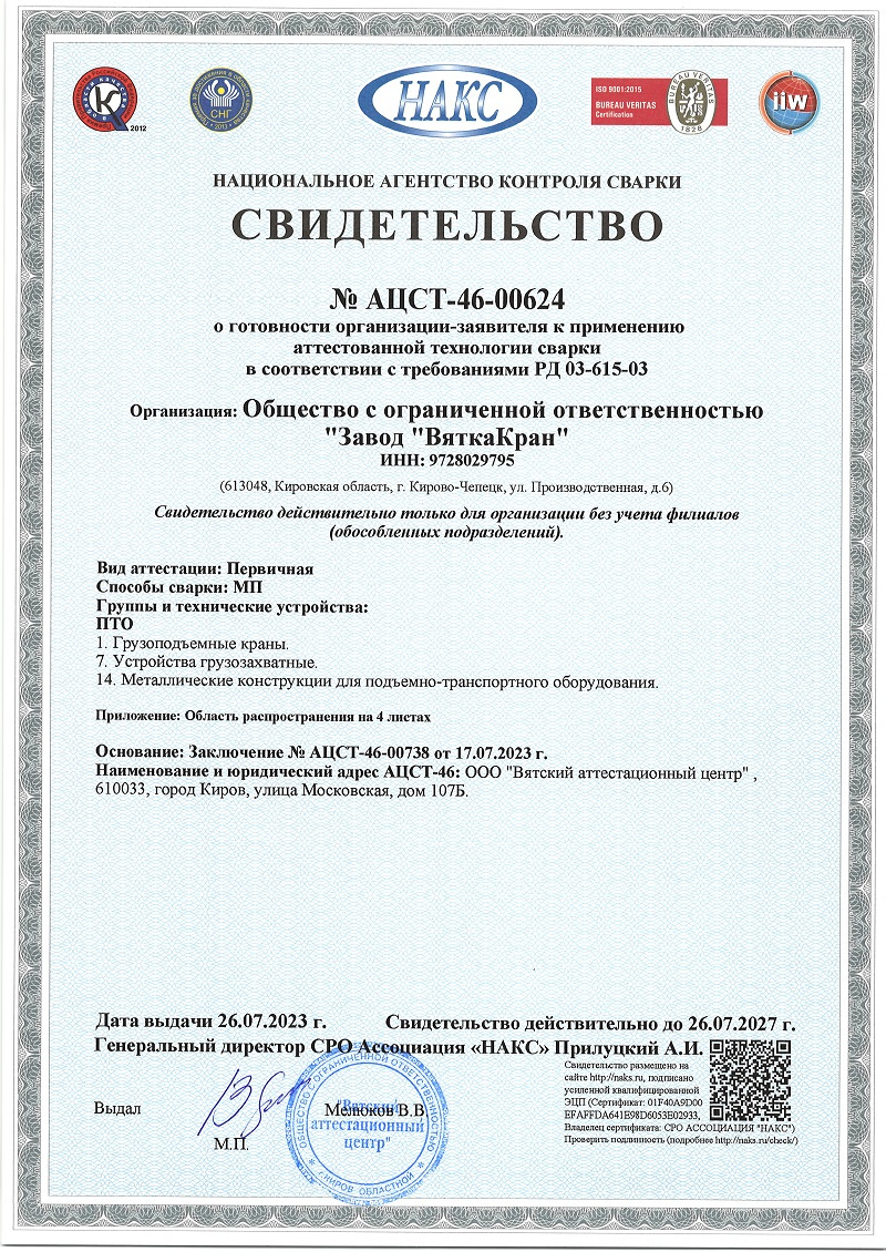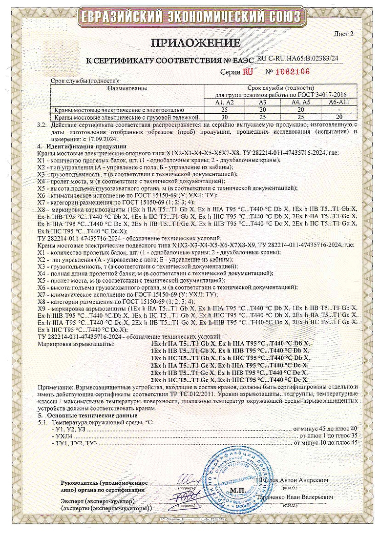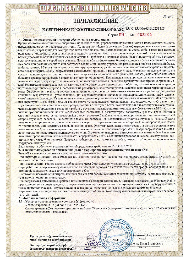 Сертификат на краны мостовые