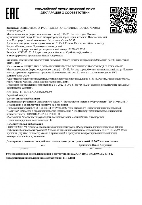 Декларация на тележки передаточные