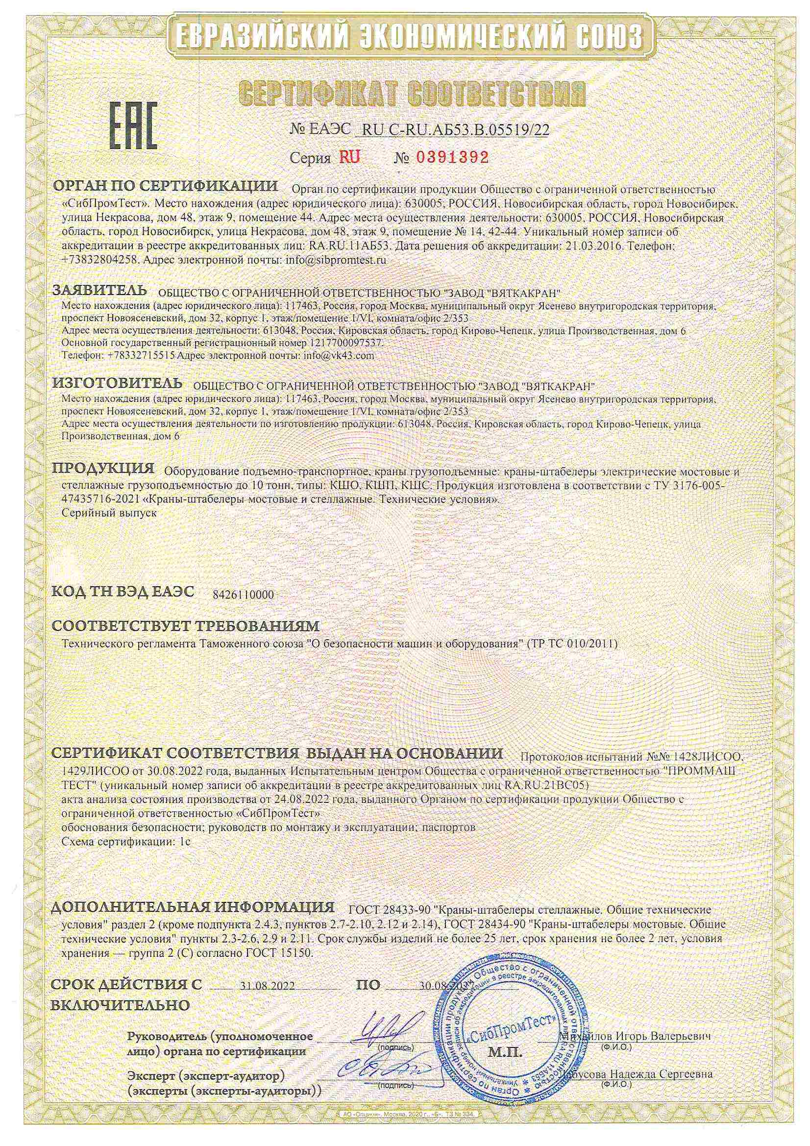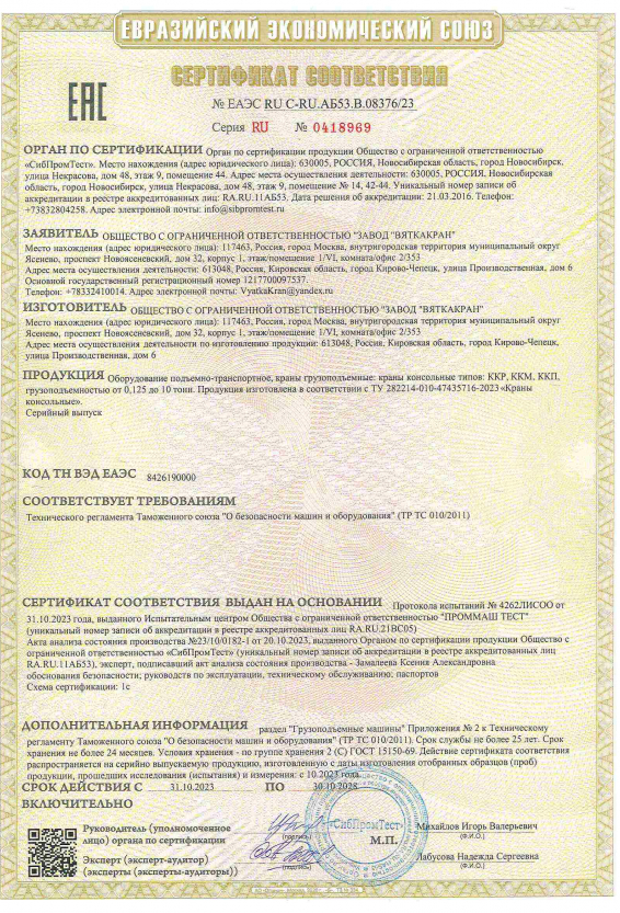Сертификат на краны-штабелеры