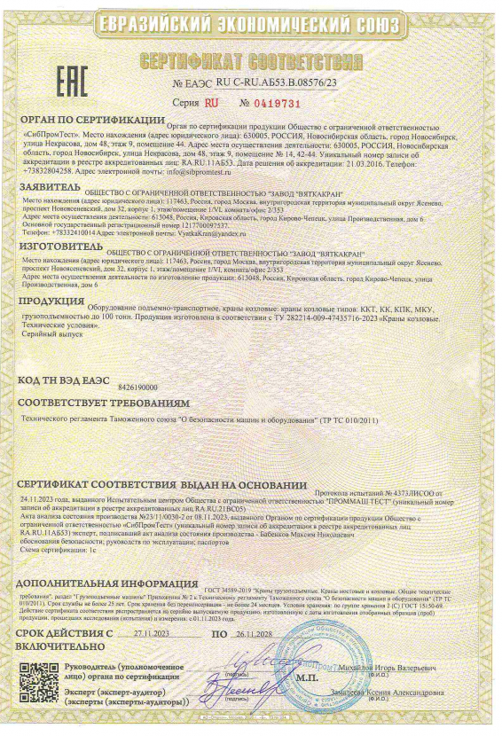 Сертификат на козловые краны
